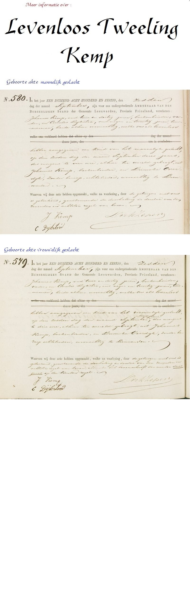 info levenloos tweeling Kemp 1860
